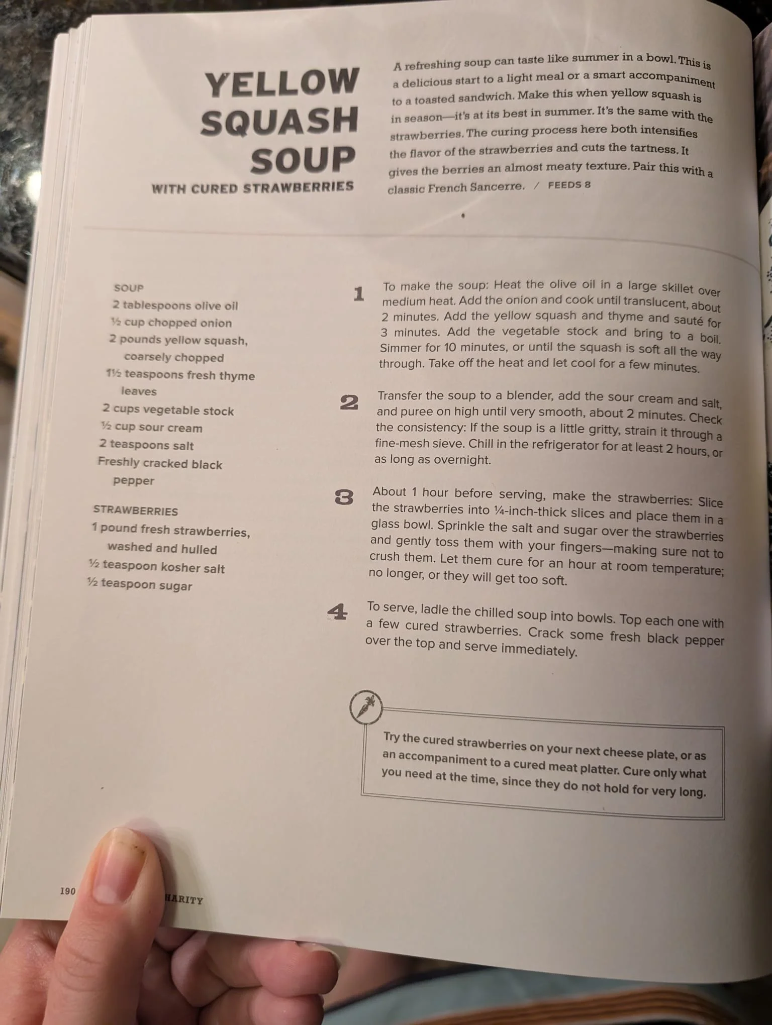 Oh!! Here’s another guest post from my sister and a recipe for Yellow Squash Soup with Cured Strawberries Recipe! Enjoy!
