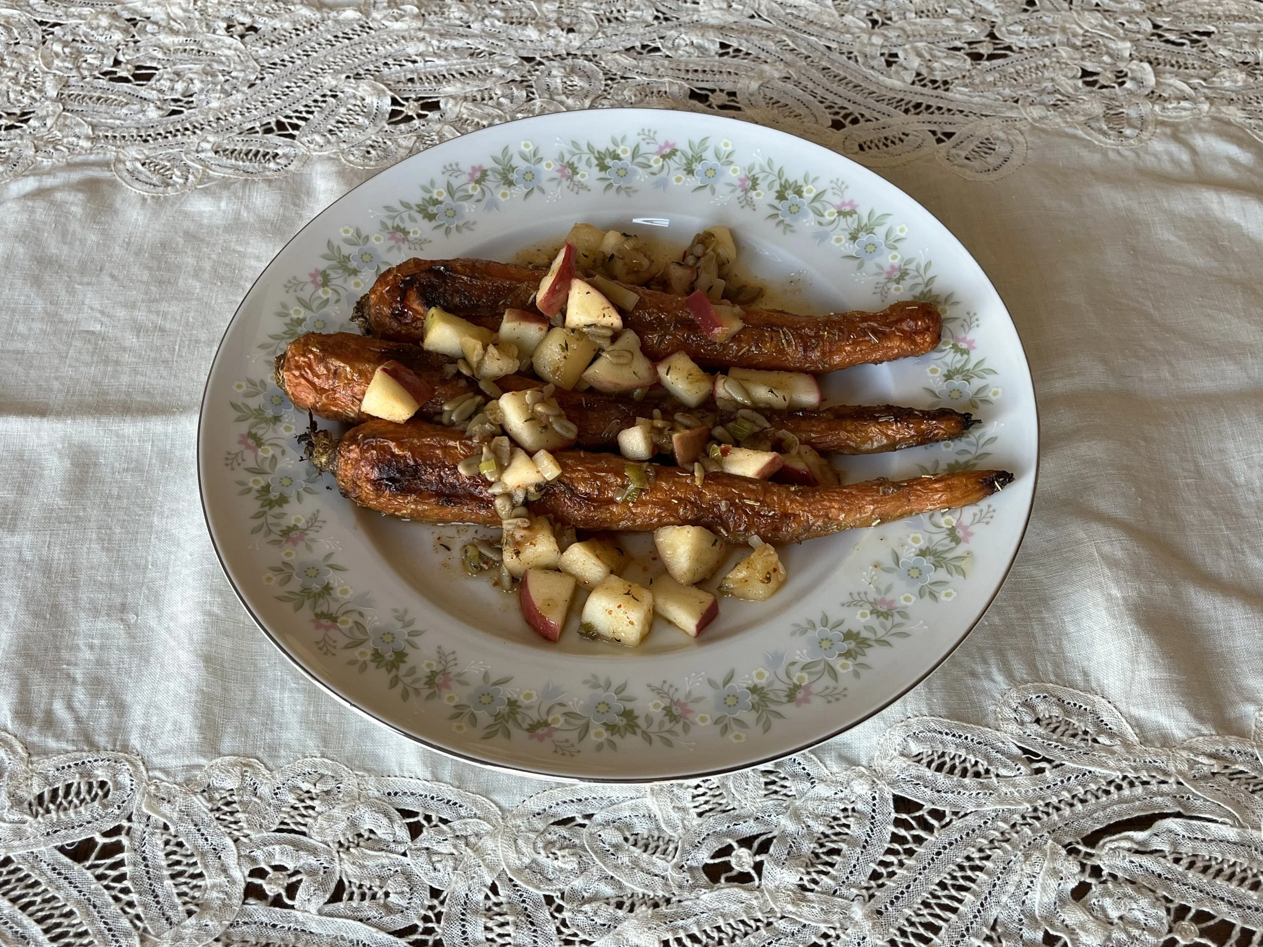 Anyone who is familiar with Viv’s recipes know they can be time consuming, but this one is “easy peezy lemon squeezy”. You can thank Aubrin with Chasing.Sage for that phrase as she was crushing a black diamond on a snowboard at the age of 5. Follow her for life lessons. If you’re really pressed on time, you can skip the apple brown-butter vinaigrette, but the carrots won’t be nearly as special.