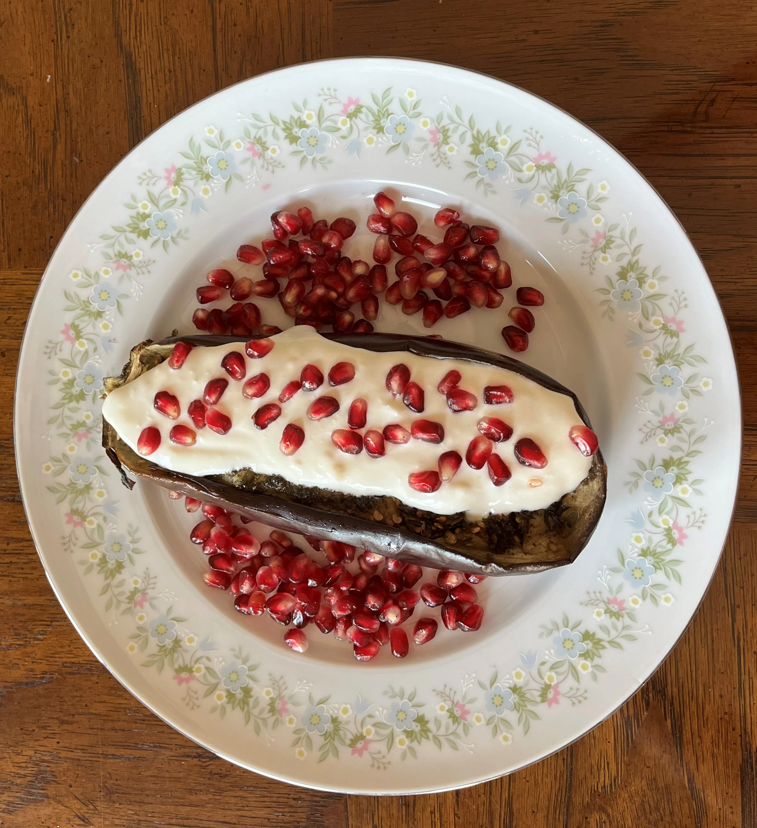 1 large pomegranate (you want about 1/3 c of perils on each eggplant half)