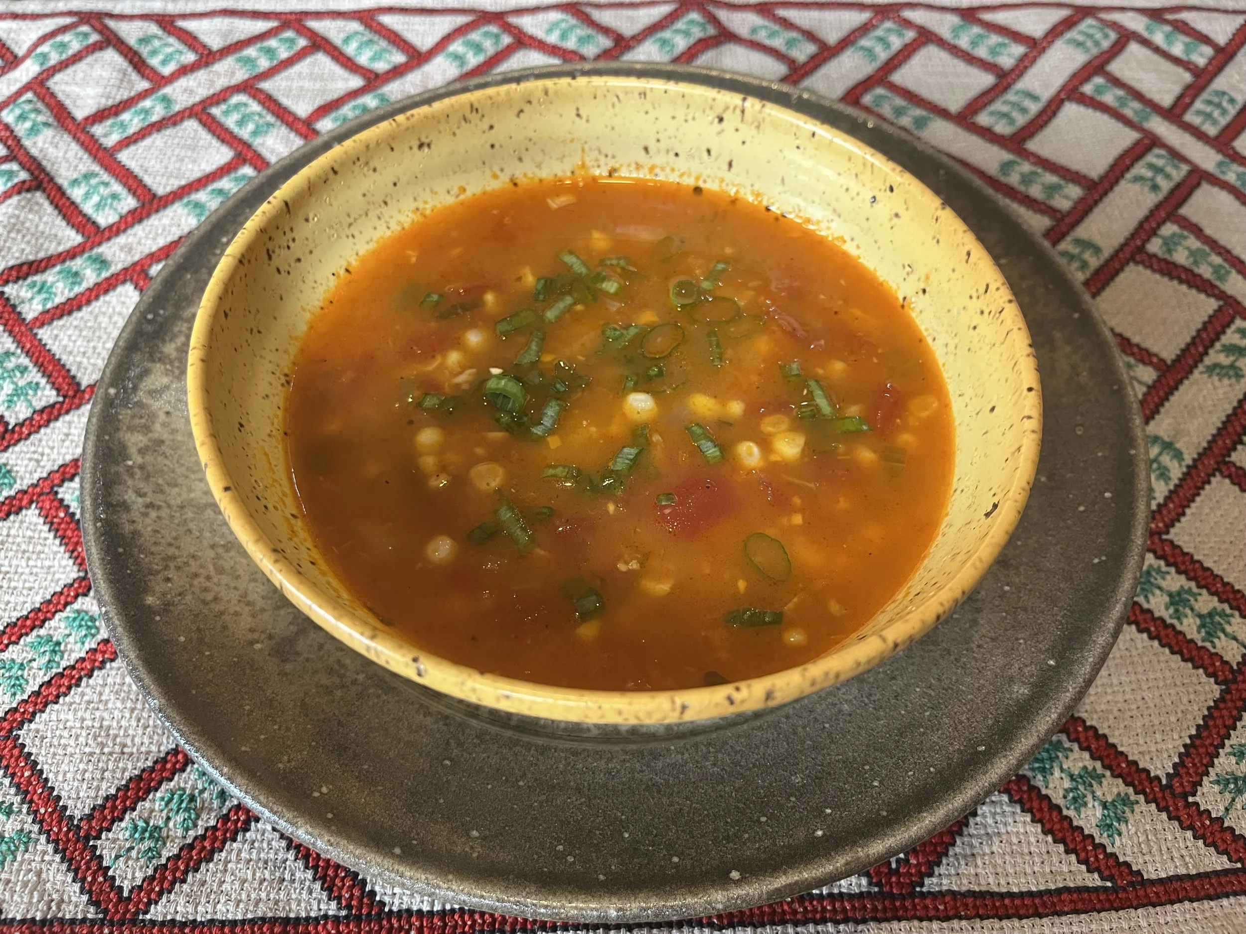 It’s bold and spicy. You can call it summery with its abundance of corn and shrimp but will hold its own with the best of winter soups because of its depth of flavor. As a bonus it freezes really well.
